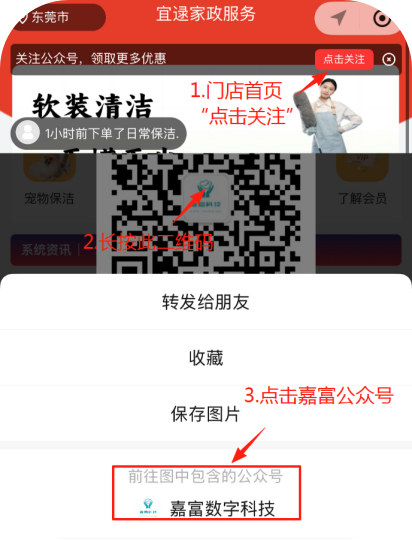 功能作用: 引导用户关注品牌的微信公众号,门店新订单会通过公众号消息第一时间通知商家。