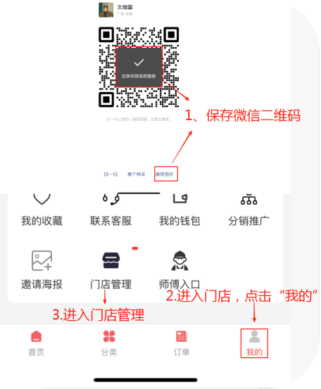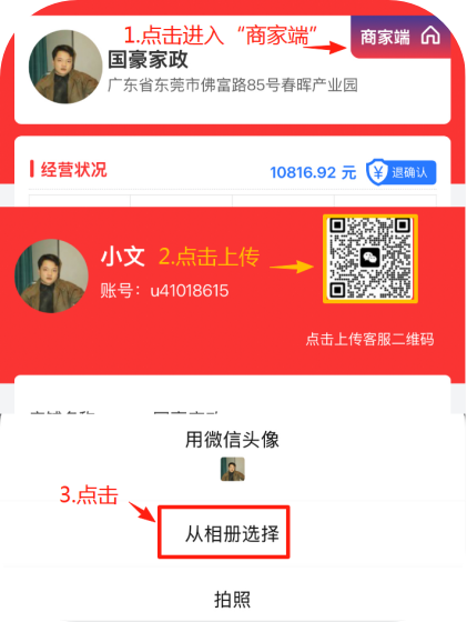 功能作用: 允许商家上传自己的企业微信或个人二维码,并展示在其数字化门店的页面中,方便客户扫码添加。